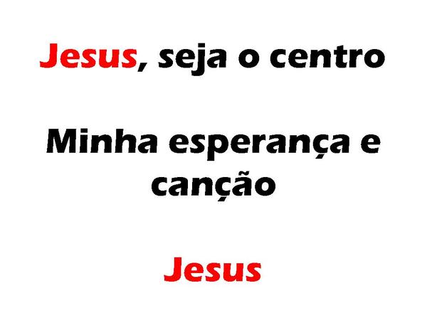 - Jesus, seja o centroMinha esperança e cançãoJesus