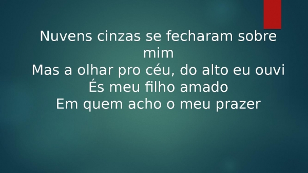 - Nuvens cinzas se fecharam sobre mimMas a olhar pro céu, do alto eu ouviÉs meu filho amadoEm quem acho o meu prazer