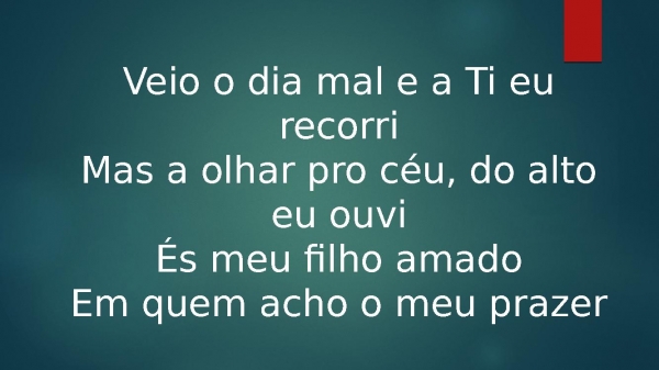 - Veio o dia mal e a Ti eu recorriMas a olhar pro céu, do alto eu ouviÉs meu filho amadoEm quem acho o meu prazer