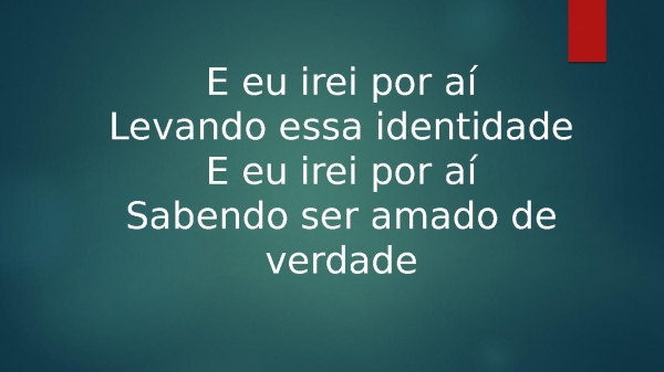 - E eu irei por aíLevando essa identidadeE eu irei por aíSabendo ser amado de verdade