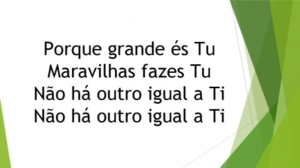 - Porque grande és TuMaravilhas fazes TuNão há outro igual a TiNão há outro igual a Ti