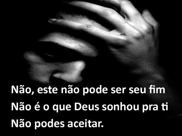 - Não, este não pode ser seu fimNão é o que Deus sonhou pra tiNão podes aceitar.