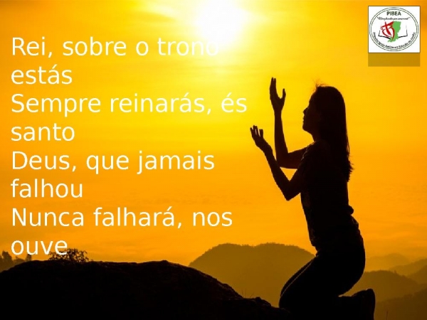 - Rei, sobre o trono estásSempre reinarás, és santoDeus, que jamais falhouNunca falhará, nos ouve