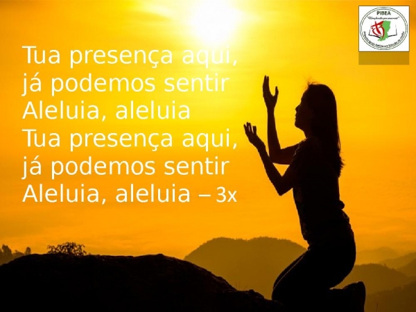 - Tua presença aqui, já podemos sentirAleluia, aleluiaTua presença aqui, já podemos sentirAleluia, aleluia – 3x