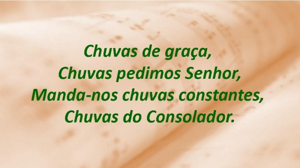 - Chuvas de graça, Chuvas pedimos Senhor,Manda-nos chuvas constantes, Chuvas do Consolador.