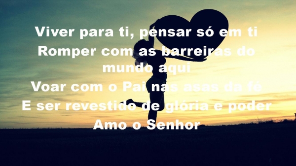 - Viver para ti, pensar só em tiRomper com as barreiras do mundo aquiVoar com o Pai nas asas da féE ser revestido de glória e poder (amo o Senhor)