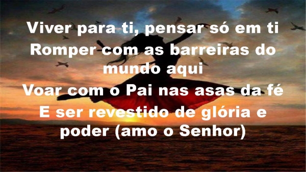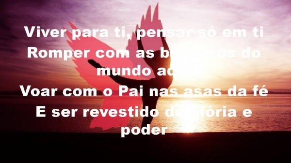 - Viver para ti, pensar só em tiRomper com as barreiras do mundo aquiVoar com o Pai nas asas da féE ser revestido de glória e poder