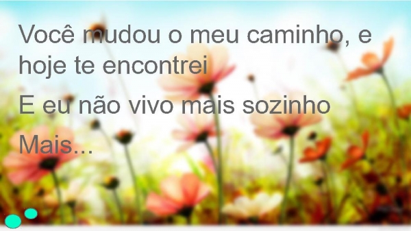 - Você mudou o meu caminho, e hoje te encontreiE eu não vivo mais sozinhoMais...