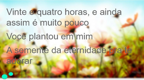 - Vinte e quatro horas, e ainda assim é muito poucoVocê plantou em mimA semente da eternidade pra te adorar