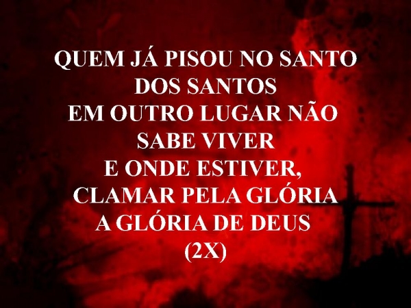 - QUEM JÁ PISOU NO SANTODOS SANTOSEM OUTRO LUGAR NÃO SABE VIVERE ONDE ESTIVER, CLAMAR PELA GLÓRIAA GLÓRIA DE DEUS (2X)