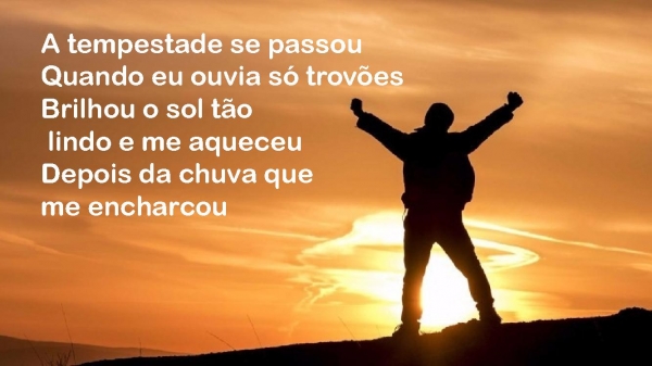 - A tempestade se passouQuando eu ouvia só trovõesBrilhou o sol tão lindo e me aqueceuDepois da chuva que me encharcou