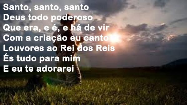 - Santo, santo, santoDeus todo poderosoQue era, e é, e há de virCom a criação eu cantoLouvores ao Rei dos ReisÉs tudo para mimE eu te adorarei
