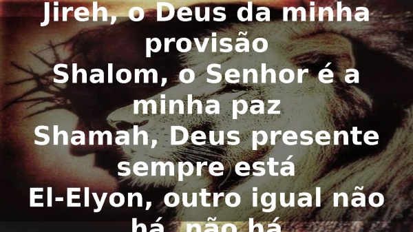 - Jireh, o Deus da minha provisãoShalom, o Senhor é a minha pazShamah, Deus presente sempre estáEl-Elyon, outro igual não há, não há