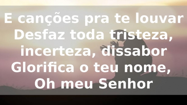 - E canções pra te louvarDesfaz toda tristeza, incerteza, dissaborGlorifica o teu nome, Oh meu Senhor