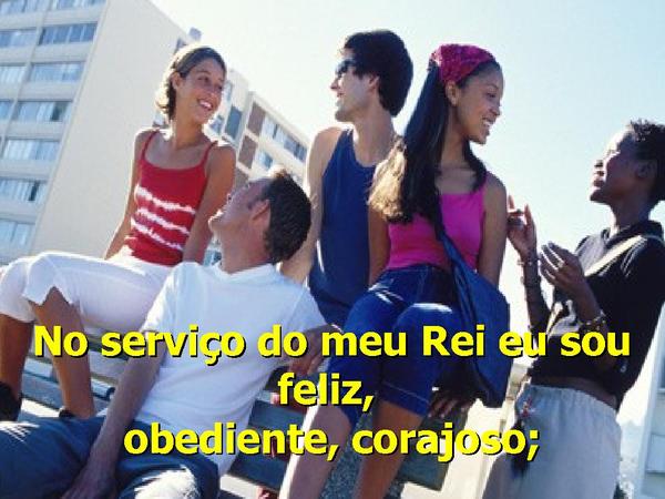 - No serviço do meu Rei eu sou feliz, obediente, corajoso;