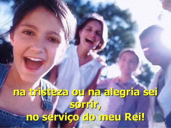 - na tristeza ou na alegria sei sorrir,no serviço do meu Rei!