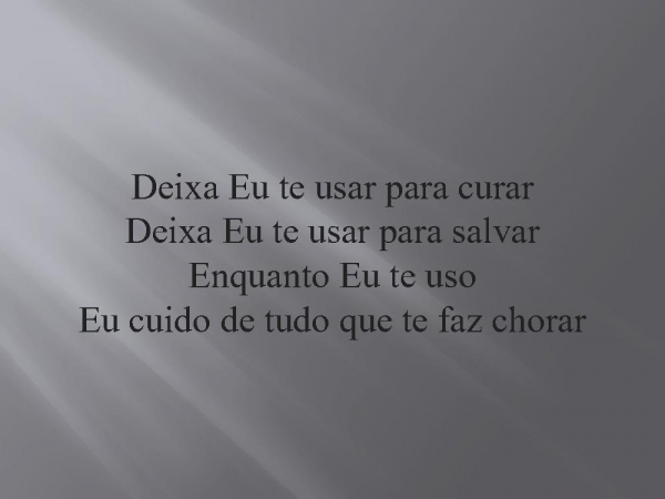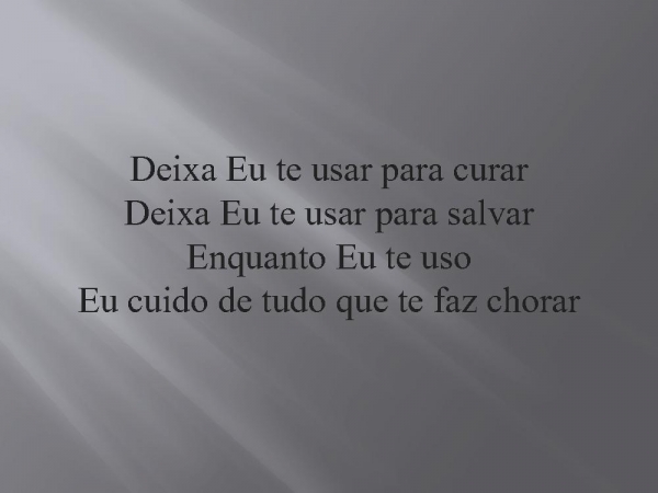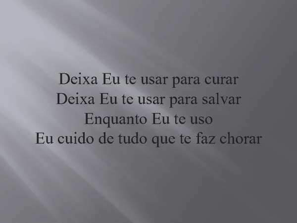 - Deixa Eu te usar para curarDeixa Eu te usar para salvarEnquanto Eu te usoEu cuido de tudo que te faz chorar
