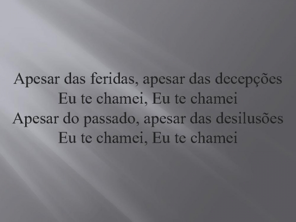 - Apesar das feridas, apesar das decepçõesEu te chamei, Eu te chameiApesar do passado, apesar das desilusõesEu te chamei, Eu te chamei
