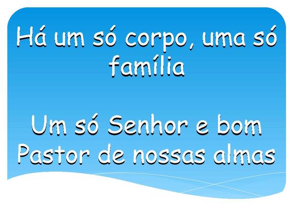 - Há um só corpo, uma só famíliaUm só Senhor e bom Pastor de nossas almas