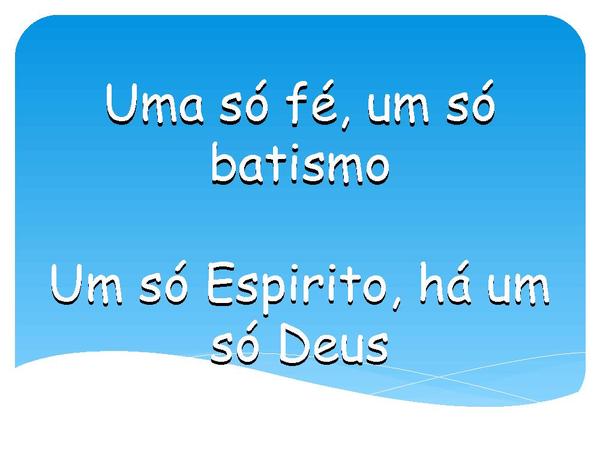 - Uma só fé, um só batismoUm só Espirito, há um só Deus