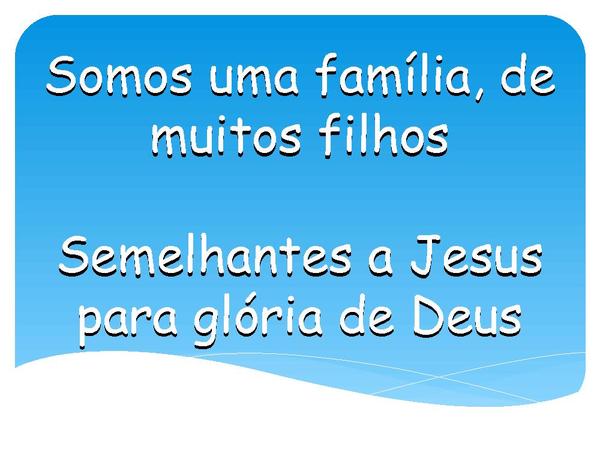 - Somos uma família, de muitos filhosSemelhantes a Jesus para glória de Deus