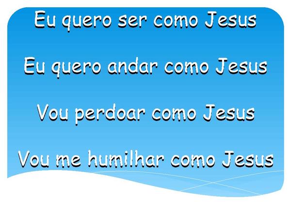 - Eu quero ser como JesusEu quero andar como JesusVou perdoar como JesusVou me humilhar como Jesus