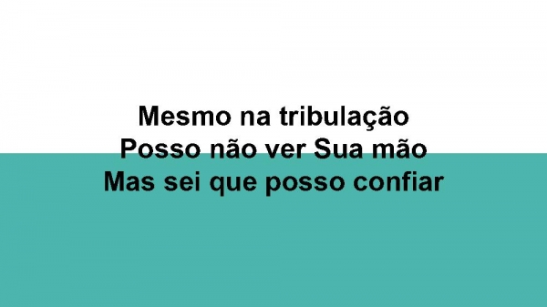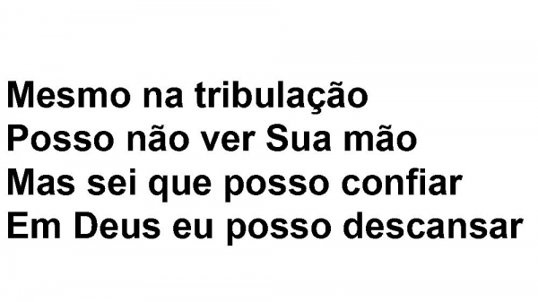 - Mesmo na tribulaçãoPosso não ver Sua mãoMas sei que posso confiarEm Deus eu posso descansar