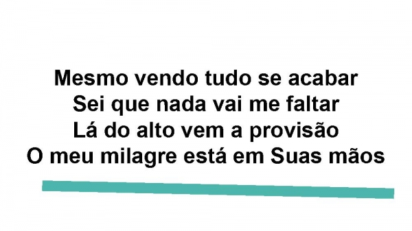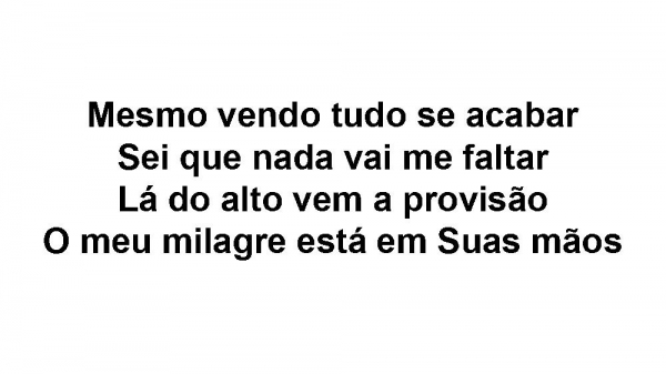 - Mesmo vendo tudo se acabarSei que nada vai me faltarLá do alto vem a provisãoO meu milagre está em Suas mãos