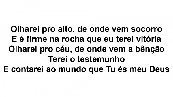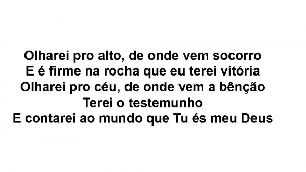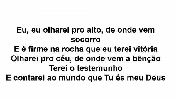 - Olharei pro alto, de onde vem socorroE é firme na rocha que eu terei vitóriaOlharei pro céu, de onde vem a bênçãoTerei o testemunhoE contarei ao mundo que Tu és meu Deus
