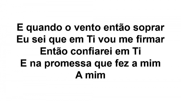 - E quando o vento então soprarEu sei que em Ti vou me firmarEntão confiarei em TiE na promessa que fez a mimA mim