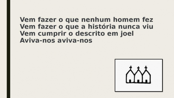 - Vem fazer o que nenhum homem fezVem fazer o que a história nunca viuVem cumprir o descrito em joelAviva-nos aviva-nos