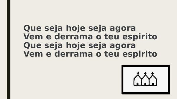 - Que seja hoje seja agoraVem e derrama o teu espiritoQue seja hoje seja agoraVem e derrama o teu espirito
