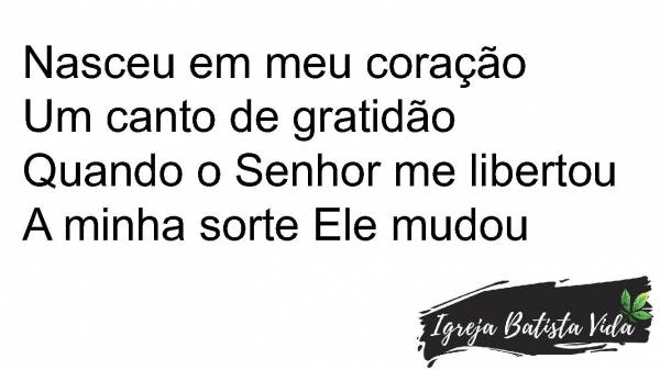 - Nasceu em meu coraçãoUm canto de gratidãoQuando o Senhor me libertouA minha sorte Ele mudou