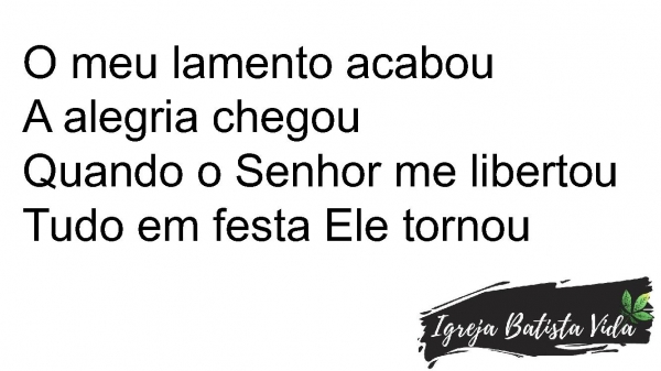 - O meu lamento acabouA alegria chegouQuando o Senhor me libertouTudo em festa Ele tornou