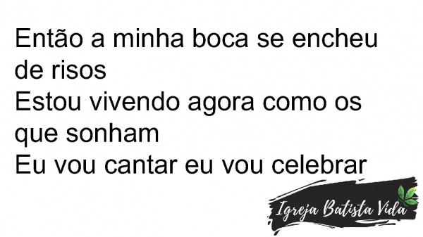 - Então a minha boca se encheu de risosEstou vivendo agora como os que sonhamEu vou cantar eu vou celebrar