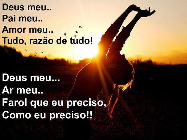- Deus meu..Pai meu..Amor meu..Tudo, razão de tudo!Deus meu...Ar meu..Farol que eu preciso,Como eu preciso!!