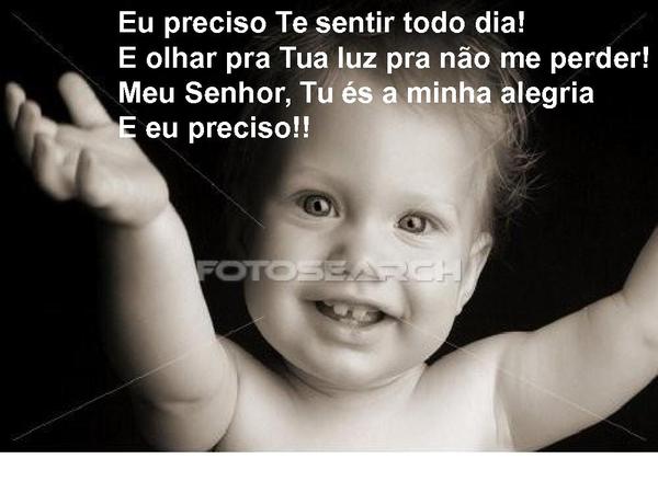 - Eu preciso Te sentir todo dia!E olhar pra Tua luz pra não me perder!Meu Senhor, Tu és a minha alegriaE eu preciso!!