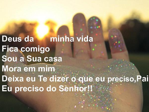 - Deus da minha vidaFica comigoSou a Sua casaMora em mimDeixa eu Te dizer o que eu preciso,PaiEu preciso do Senhor!!