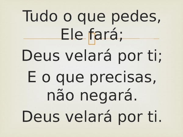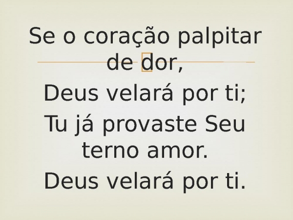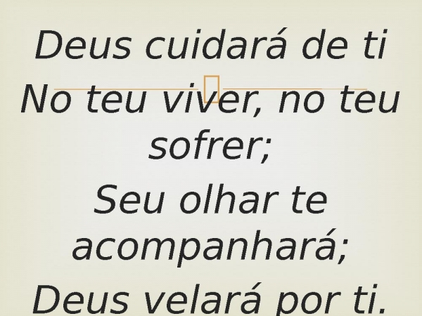 - Deus cuidará de tiNo teu viver, no teu sofrer;Seu olhar te acompanhará;Deus velará por ti.