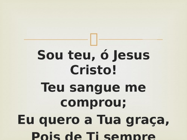 - Sou teu, ó Jesus Cristo!Teu sangue me comprou;Eu quero a Tua graça,Pois de Ti sempre sou.