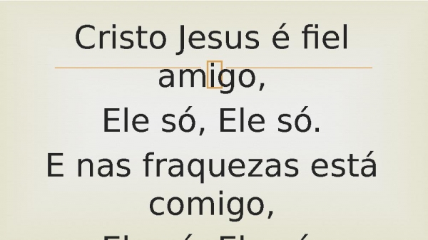 - Cristo Jesus é fiel amigo,Ele só, Ele só.E nas fraquezas está comigo,Ele só, Ele só.