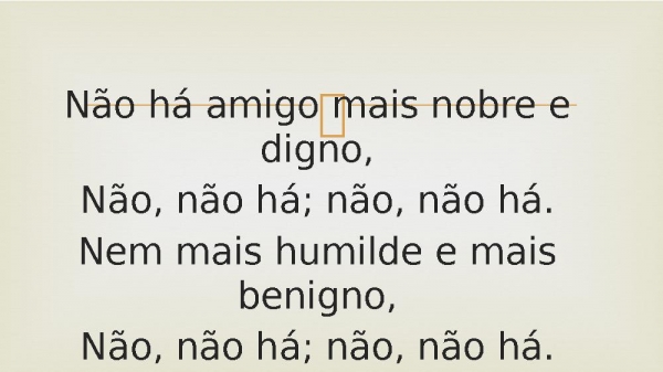- Não há amigo mais nobre e digno,Não, não há; não, não há.Nem mais humilde e mais benigno,Não, não há; não, não há.