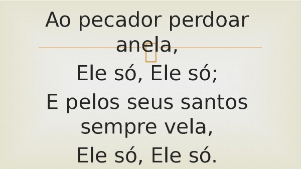 - Ao pecador perdoar anela,Ele só, Ele só;E pelos seus santos sempre vela,Ele só, Ele só.