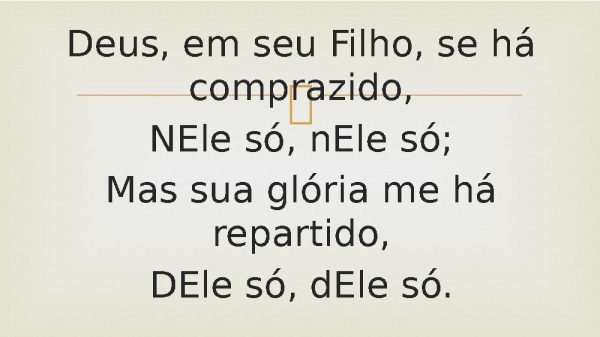 - Deus, em seu Filho, se há comprazido,NEle só, nEle só;Mas sua glória me há repartido,DEle só, dEle só.