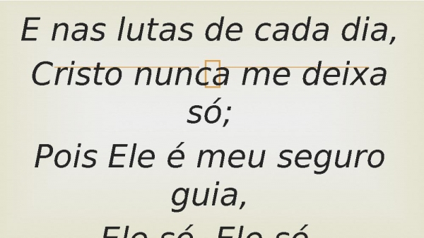 - E nas lutas de cada dia,Cristo nunca me deixa só;Pois Ele é meu seguro guia,Ele só, Ele só.