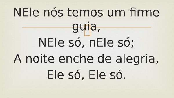 - NEle nós temos um firme guia,NEle só, nEle só;A noite enche de alegria,Ele só, Ele só.