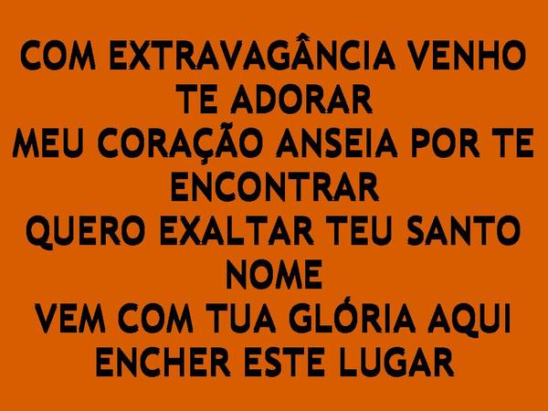 - COM EXTRAVAGÂNCIA VENHO TE ADORARMEU CORAÇÃO ANSEIA POR TE ENCONTRARQUERO EXALTAR TEU SANTO NOMEVEM COM TUA GLÓRIA AQUIENCHER ESTE LUGAR