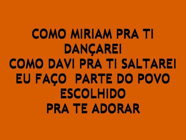 - COMO MIRIAM PRA TI DANÇAREICOMO DAVI PRA TI SALTAREIEU FAÇO PARTE DO POVO ESCOLHIDOPRA TE ADORAR