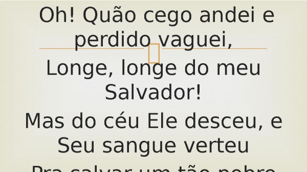 - Oh! Quão cego andei e perdido vaguei,Longe, longe do meu Salvador!Mas do céu Ele desceu, e Seu sangue verteuPra salvar um tão pobre pecador.