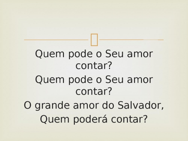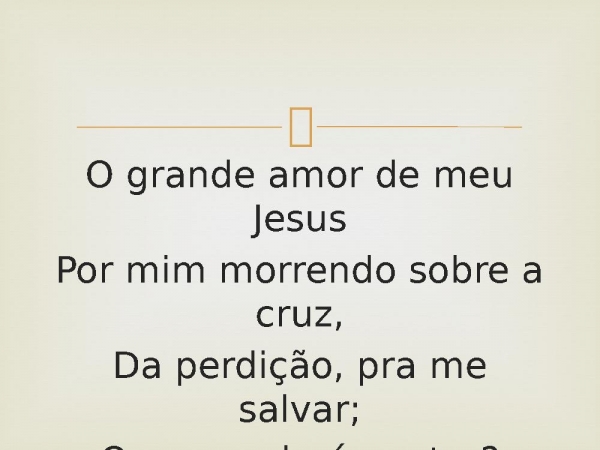 - O grande amor de meu JesusPor mim morrendo sobre a cruz,Da perdição, pra me salvar;Quem poderá contar?